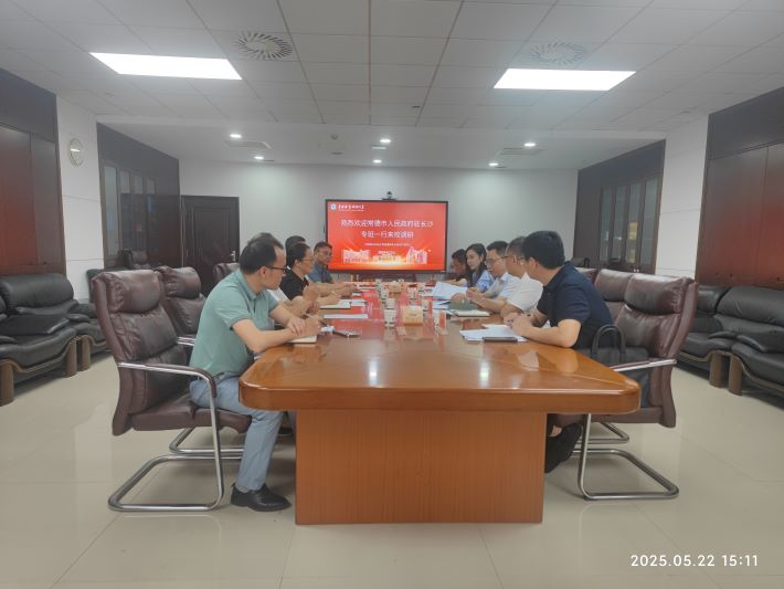 2025 年 5 月 22 日,常德市省(央)企对接暨重大招商引资工作驻长专班组长朱正权一行到访我校,就产学研及科技成果转化、竹产业园建设合作展开深入考察交流。我校成果转化与知识产权中心李晴副主任、陆俊教授、郝景新教授等 5 位代表出席座谈,双方共探合作新机遇,共谋发展新篇章。