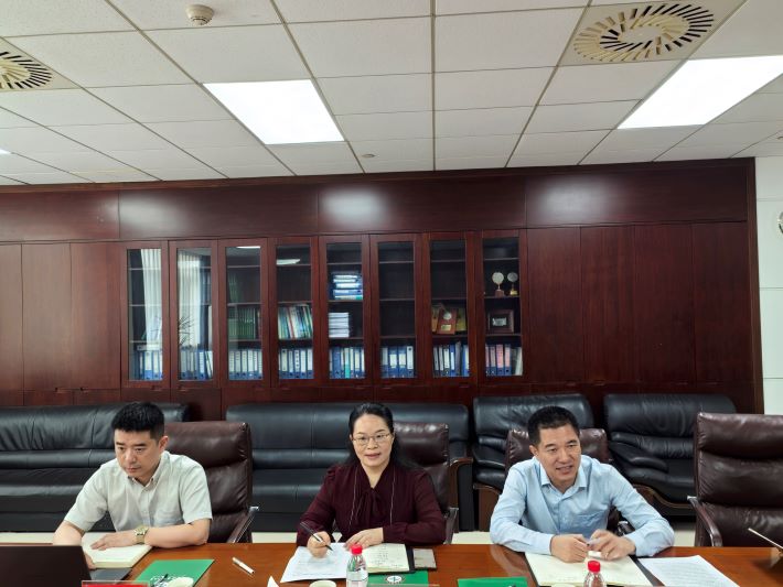 2025 年 6 月 4 日,长沙市科技局党组成员、副局长左列,科技成果与技术市场处处长商玲玲莅临学校,开展考察交流活动。学校成果中心夏换主任、李晴副主任等4人热情接待,并在座谈会上展开深入交流探讨。