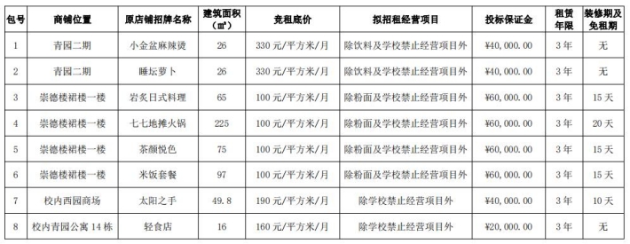 1.1项目名称:中南林业科技大学青园二期、崇德楼裙楼一楼、校内西园商场、校内青园公寓14栋商铺招租